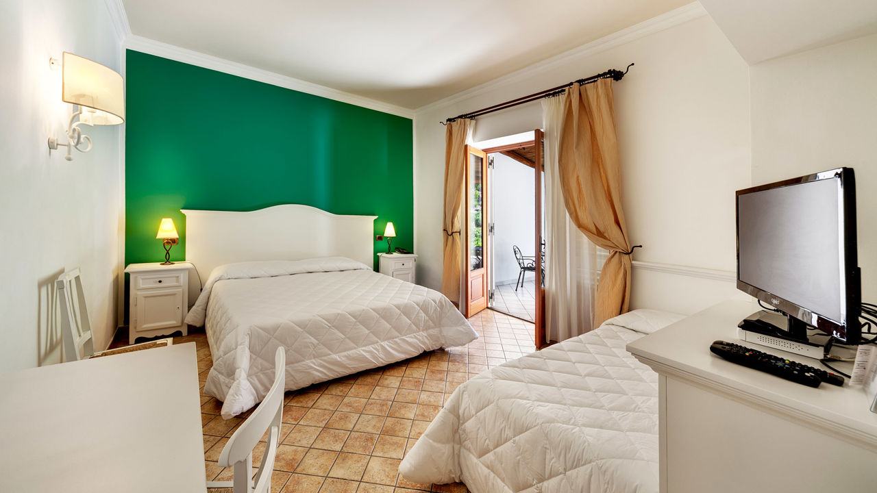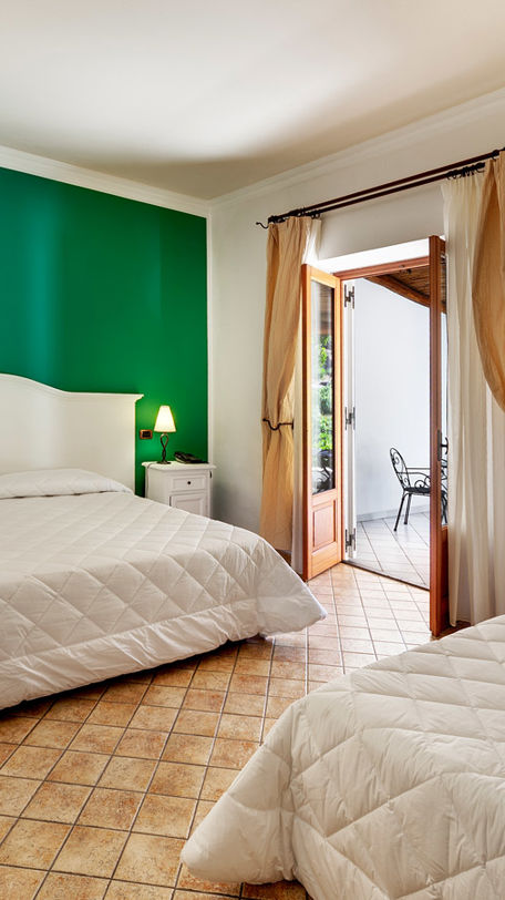Spacious and comfortable rooms, with Aeolian style furnishings,, wood or wrought iron beds. TV SAT, air conditioning, free internet wi-fi, mini bar, direct dial telephone, safe and balcony are among the conveniences. The bathrooms, some with shower or jacuzzi, are tiled with raw marble stone.