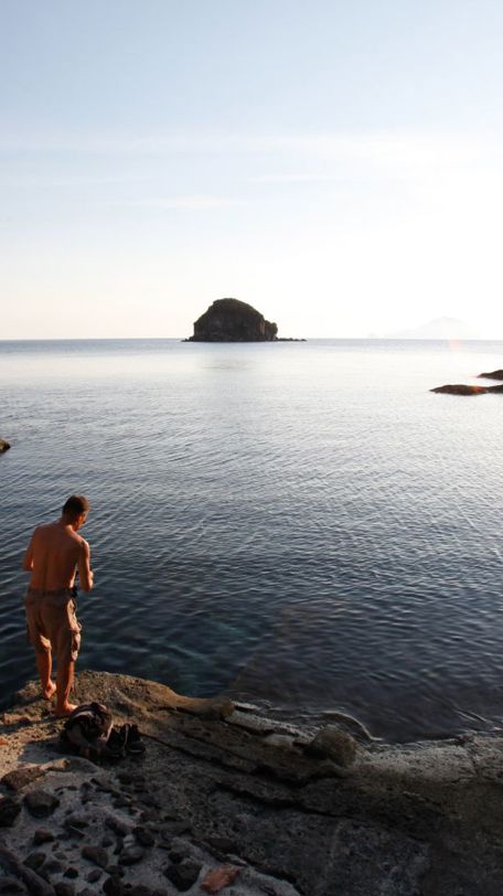 L'isola si chiamava Didỳmē (didymos, gemello) anche se la storia successiva ha sciaguratamente cancellato quel nome appropriato, poetico, illuminante. Ma in quel momento il passato greco era lontano, forse quasi dimenticato e contava di più l'attività della salina di Lingua, che produceva oro bianco per l'arcipelago e oltre. I due coni sono due montagne: il Monte della Fossa delle Felci che con i suoi 962 metri è la cima maggiore delle Eolie. L'altro è il Monte dei Porri alto 860 metri”
