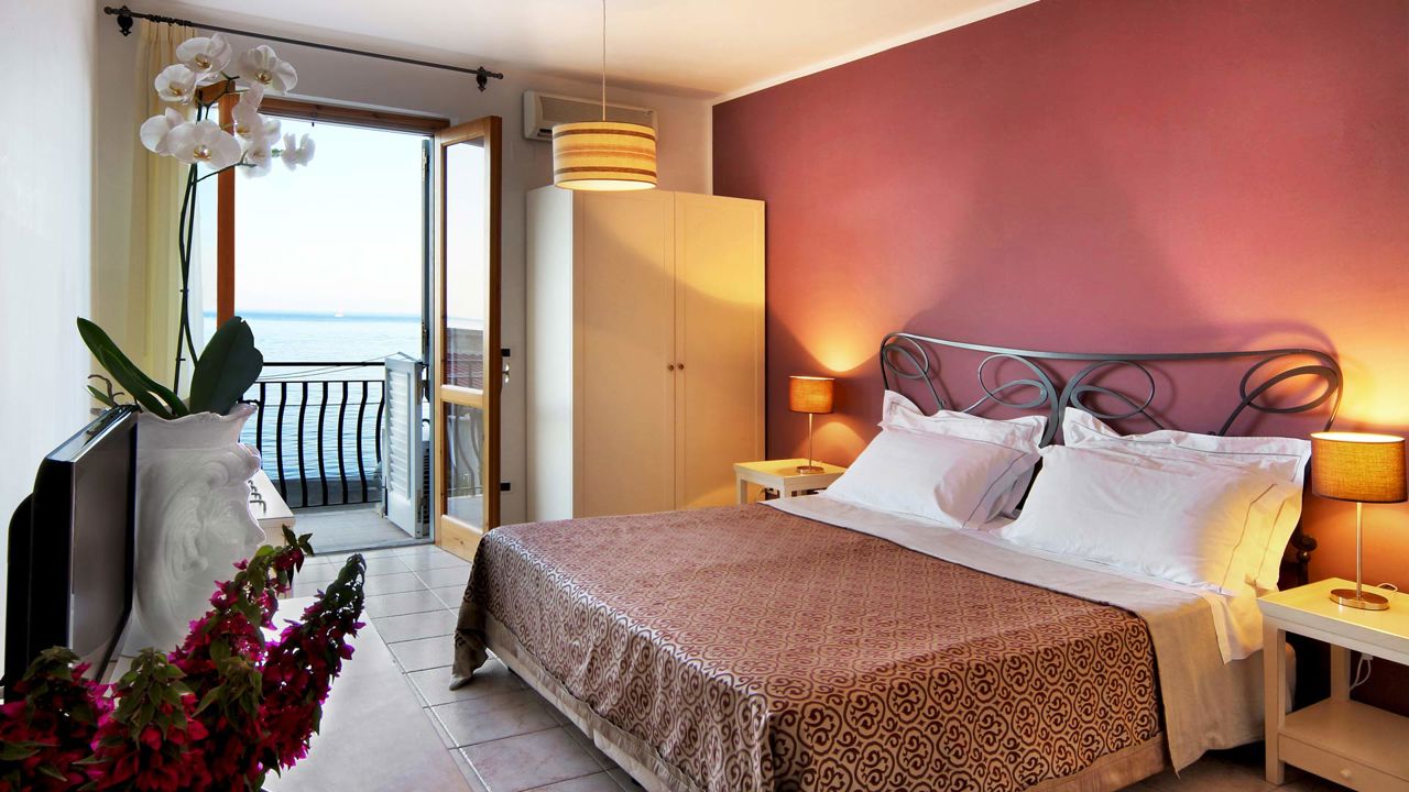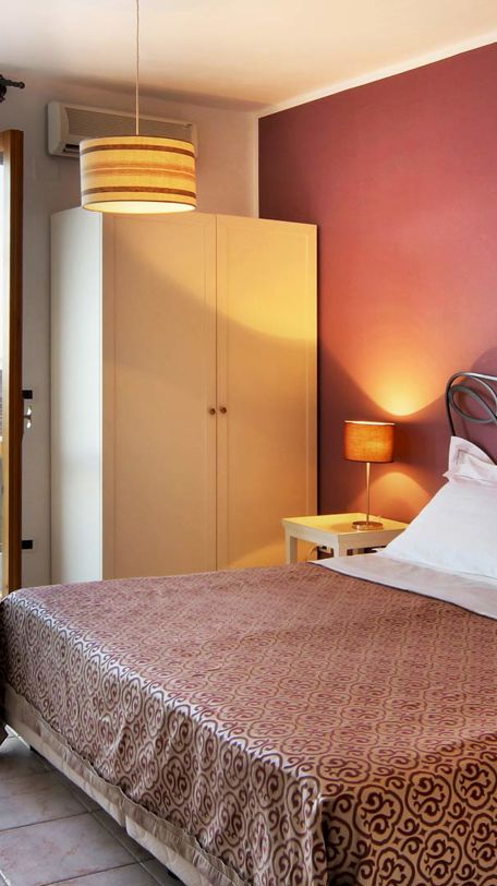 Accoglienti e graziose matrimoniali al secondo piano, con testate in ferro battuto, TV, aria condizionata, scrivania, minibar, telefono, servizio sveglia, cassaforte, balcone e stendino.